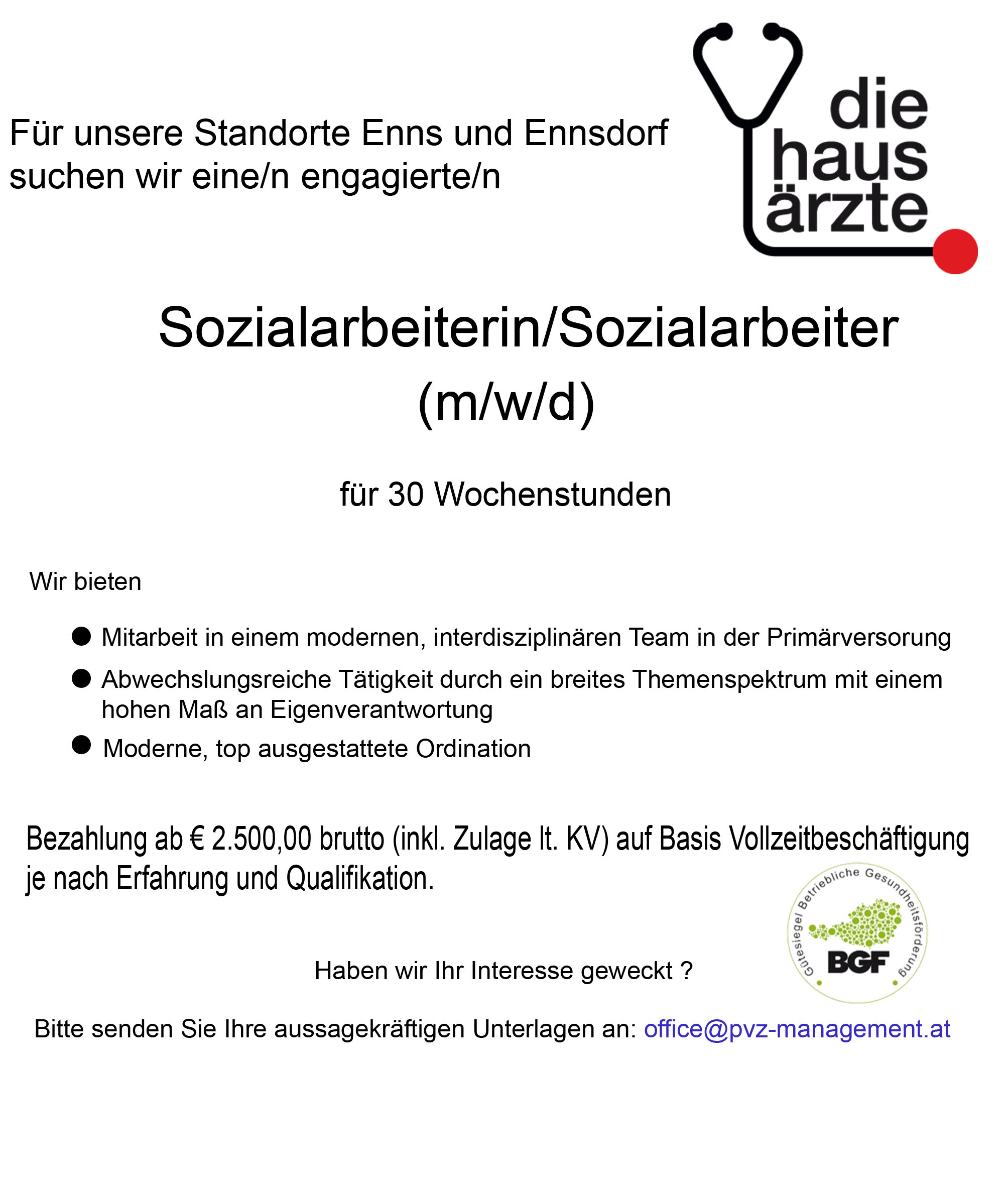 Sie haben Freude an der Arbeit im Team und möchten Teil des Primärversorgungszentrums Enns werden?